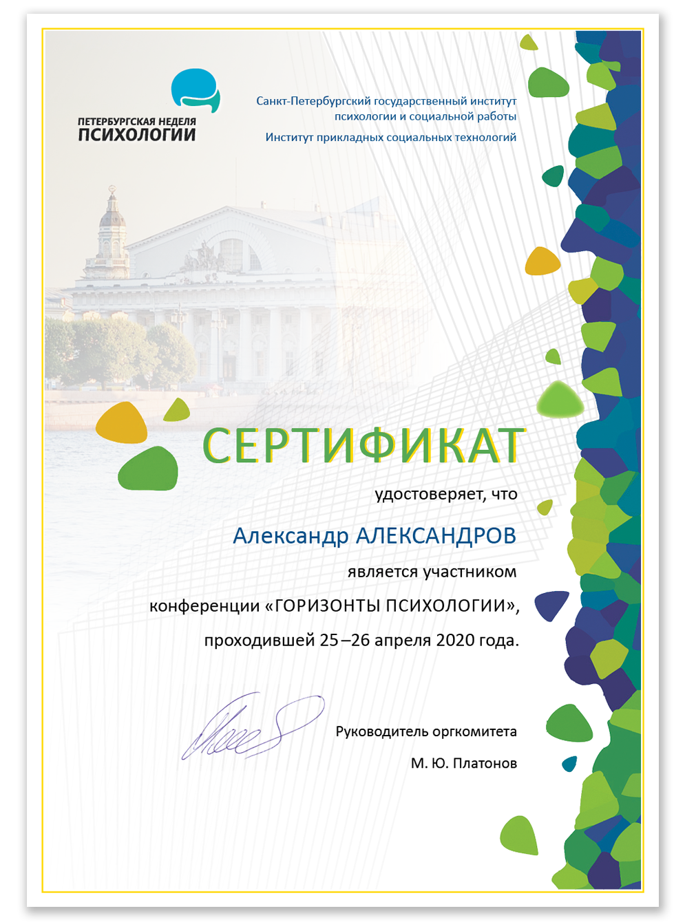 Участники Петербургской недели психологии смогут получить Сертификат участника, а также Удостоверение о повышении квалификации.